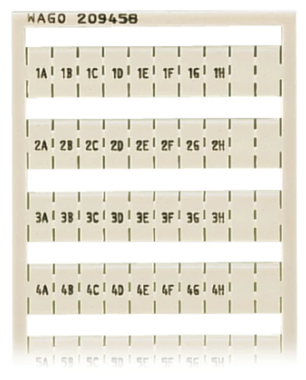 mata oznacznikowa WSB; jako karta; z nadrukiem; 1A, 1B, ..., 1G, 1H, ... do 10A, 10B, ..., 10G, 10H, , ; (po 1x); nierozciągalne; nadruk poziomo; do montażu zatrzaskowego; biały