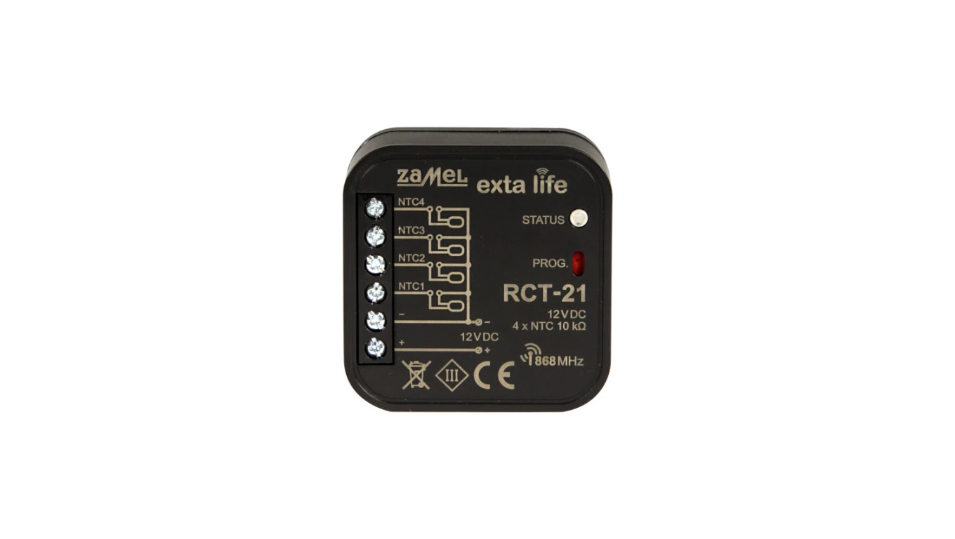 RCT-21 RADIOWY CZUJNIK TEMPERATURY EXTA LIFE DOPUSZKOWY, 4-KANAŁOWY, 12VDC, DO WSPÓŁPRACY Z SONDAMI