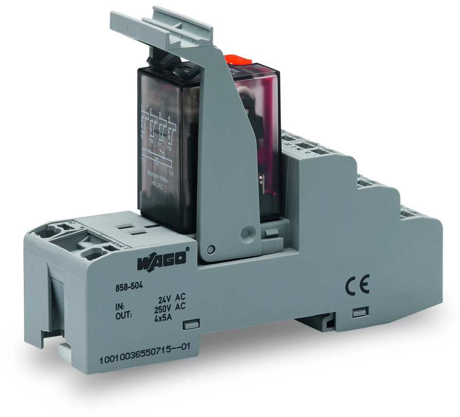 przekaźnik; znamionowe napięcie wejściowe 24 V AC; 4 x zestyk przełączny; maksymalny prąd długotrwały 5 A; z ręcznym pobudzeniem; sygnalizacja statusu czerwony; szerokość 31 mm