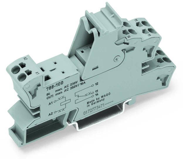podstawka przekaźnika; 2 x zestyk przełączny; do przekaźników bazowych, 15 mm; szary