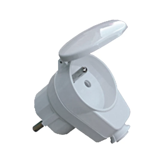 Rozdzielacz kątowy wtyczka-gniazdo z pokrywą z/u 16A 2P IP44 AWA-WGB biała 51.35