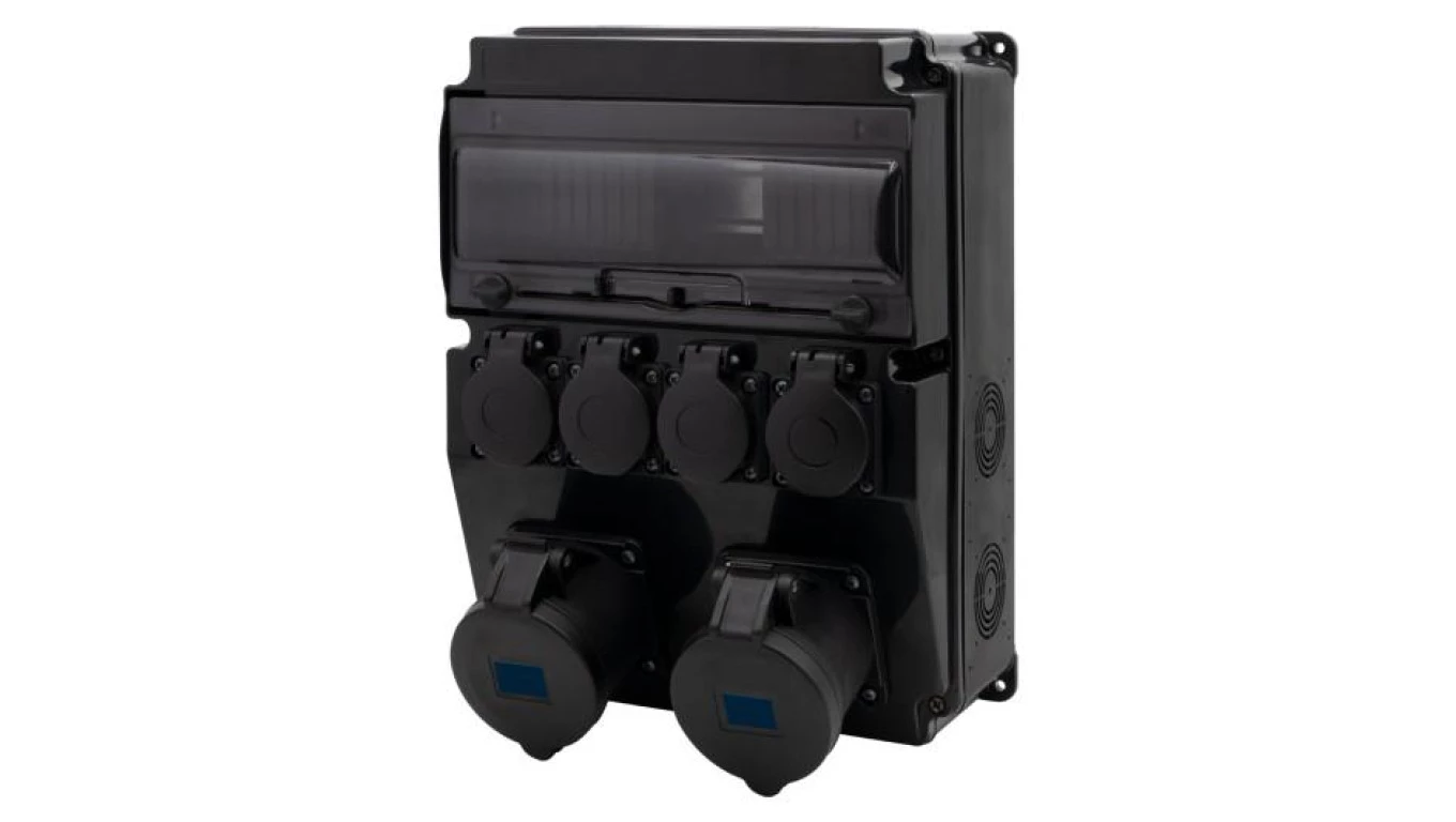 Rozdzielnica CAJA 12M SCENIC - gniazda proste 2x16A 3p, 4x230V o numerze katalogowym   F3.2904 w kategorii Osprzęt przemysłowy-siłowy>Zestawy zasilające. Produkt wyprodukowany przez markę F-ELEKTRO.