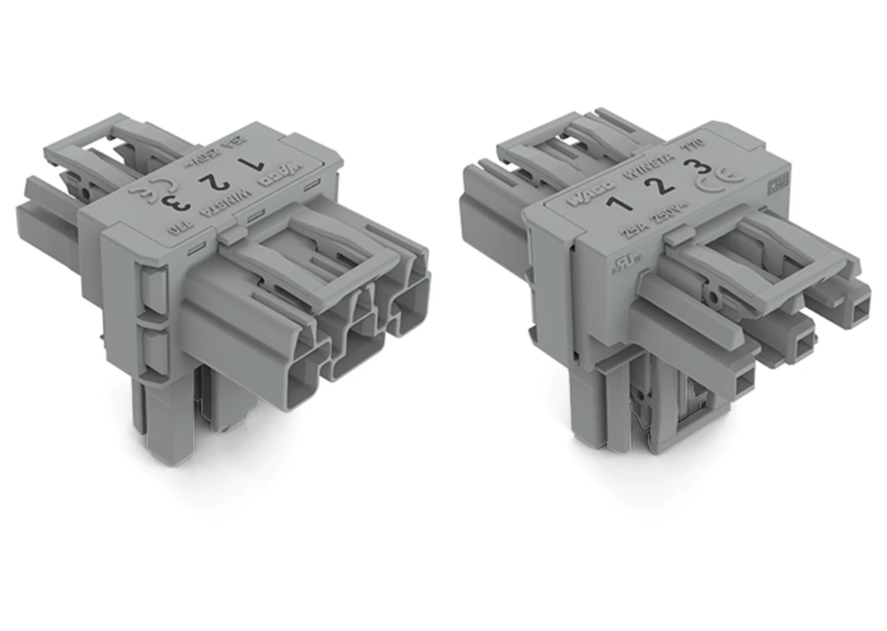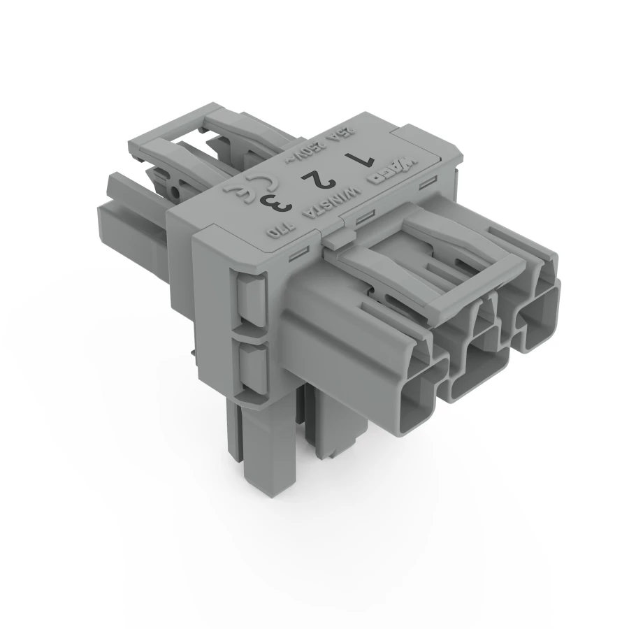 Rozgałęźnik typu T 3-torowy 1x wtyk / 2x gniazdo szary WINSTA 770-970 /50szt./