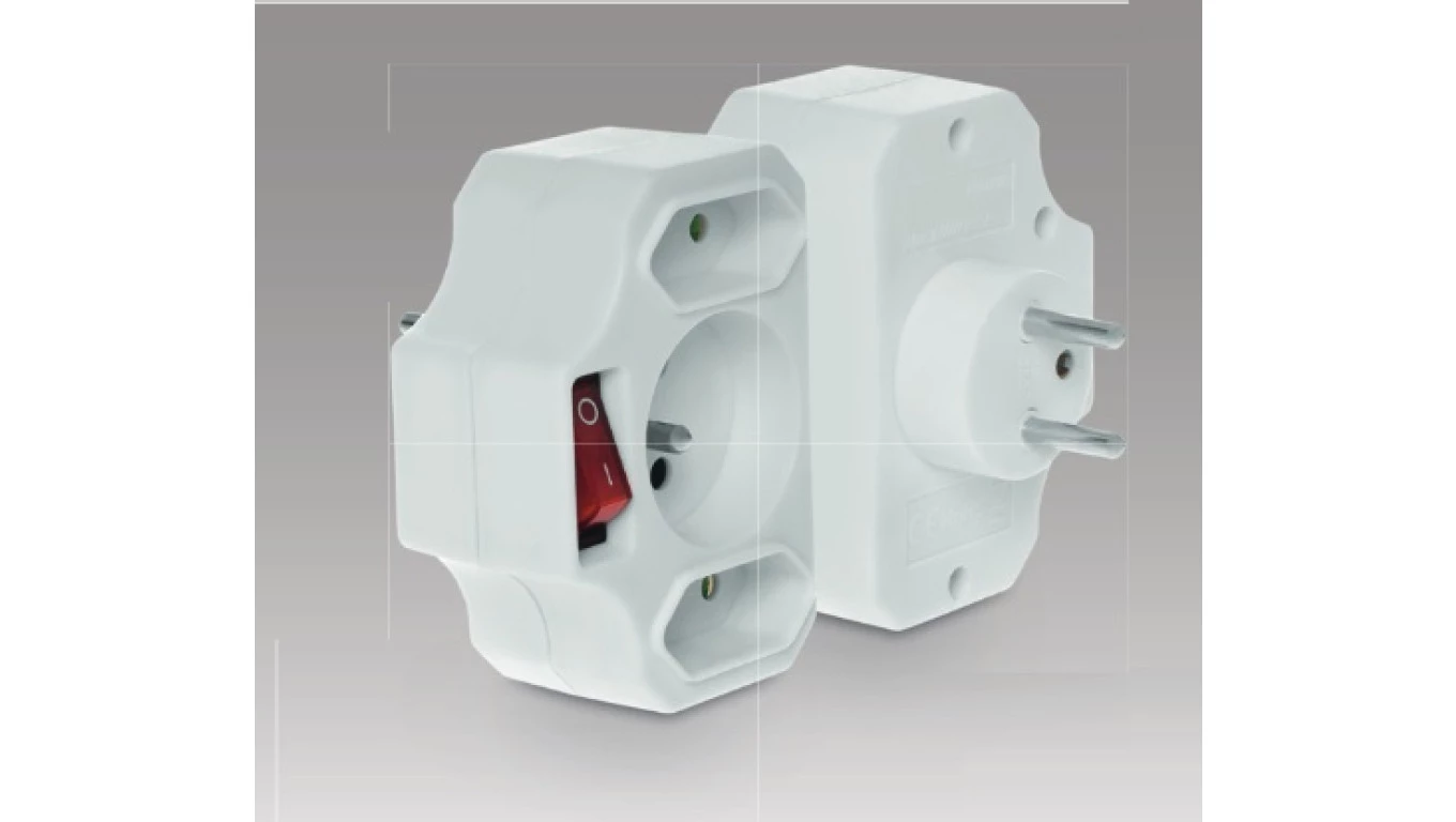 Rozgałęźnik wtyczkowy z wyłącznikiem 1-gniazdo z/u + 2x Euro biały R-12WS-B