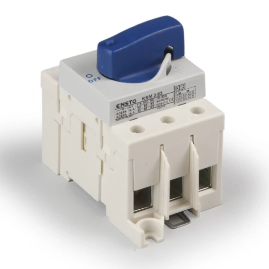 rozłącznik 3P 125A z niebieskim pokrętłem, montaż na DIN 35 lub płycie KSM3.125