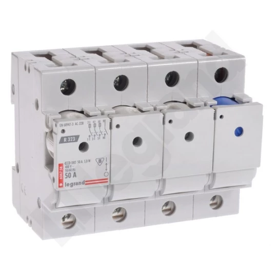 Rozłącznik izolacyjny, bezpiecznikowy, trójbiegunowy z rozłączalnym biegunem neutralnym, R 323 50A o numerze katalogowym 606758 w kategorii Rozłączniki bezpiecznikowe D, Rozłączniki bezpiecznikowe. Produkt wyprodukowany przez markę LEGRAND, seria R300.