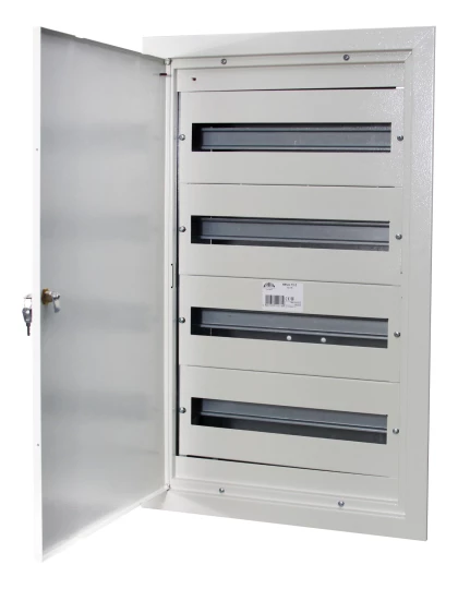 Rozdzielnia podtynkowa RPsm-72 (4x18) z zamkiem. Miejsce na 72 zabezpieczenia typu S.IP30 o numerze katalogowym P72-4-18-20 w kategorii Metalowe podtynkowe, Rozdzielnice i obudowy. Produkt wyprodukowany przez markę SABAJ, seria RPSM.