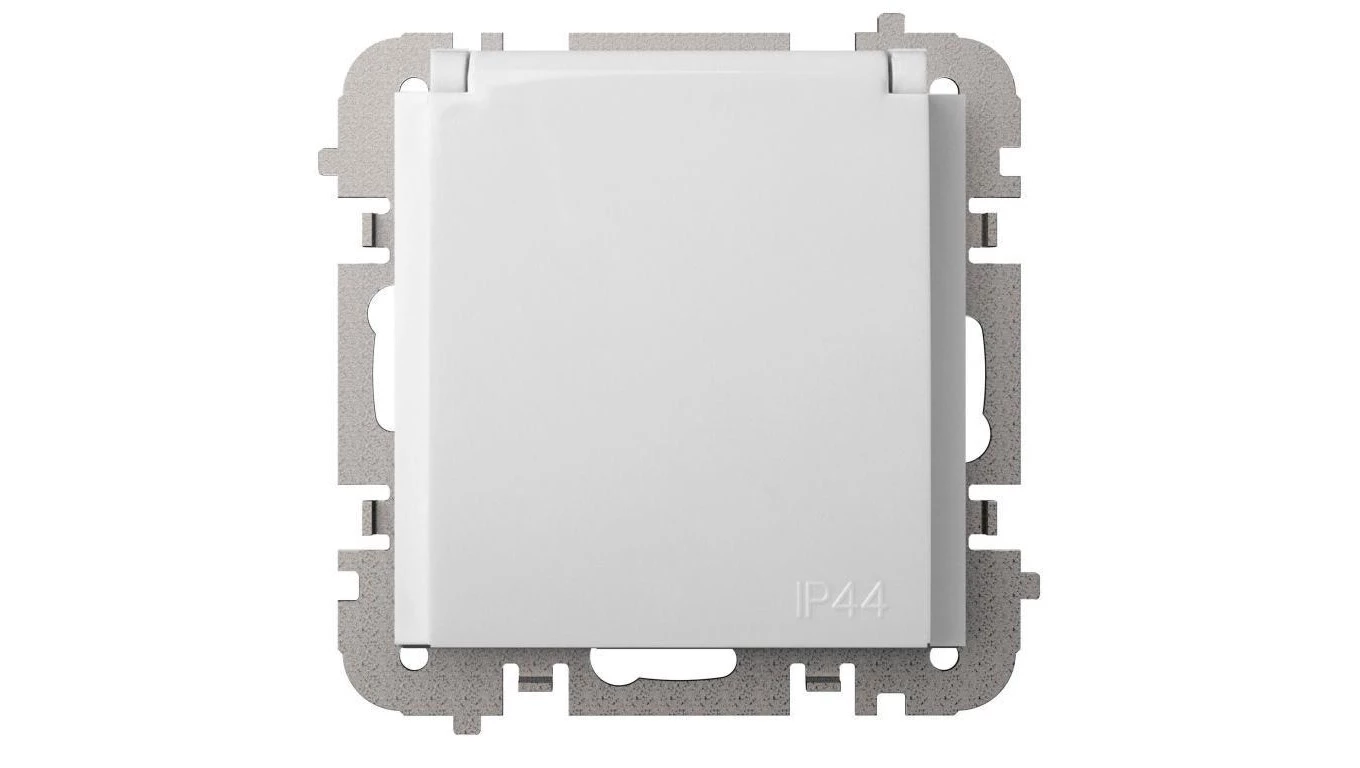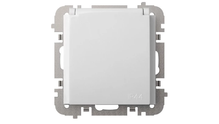 Simon 54 Gniazdo pojedyncze SCHUKO z/u 16A IP20 z przesłoną torów, szybkozłącza, białe DGSz1CZ.01/11