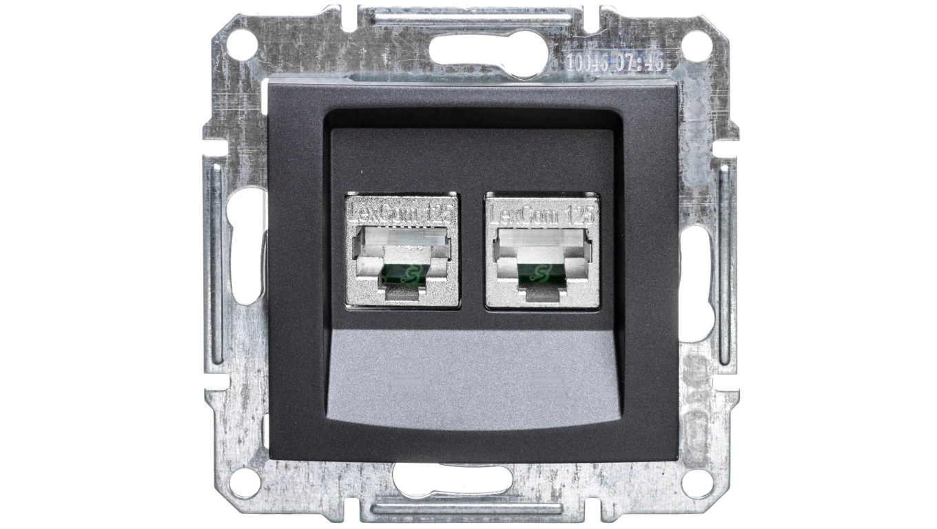 Simon 54 Gniazdo komputerowe podwójne 2xRJ45 kat.6 z przesłoną antracyt D62.01/48