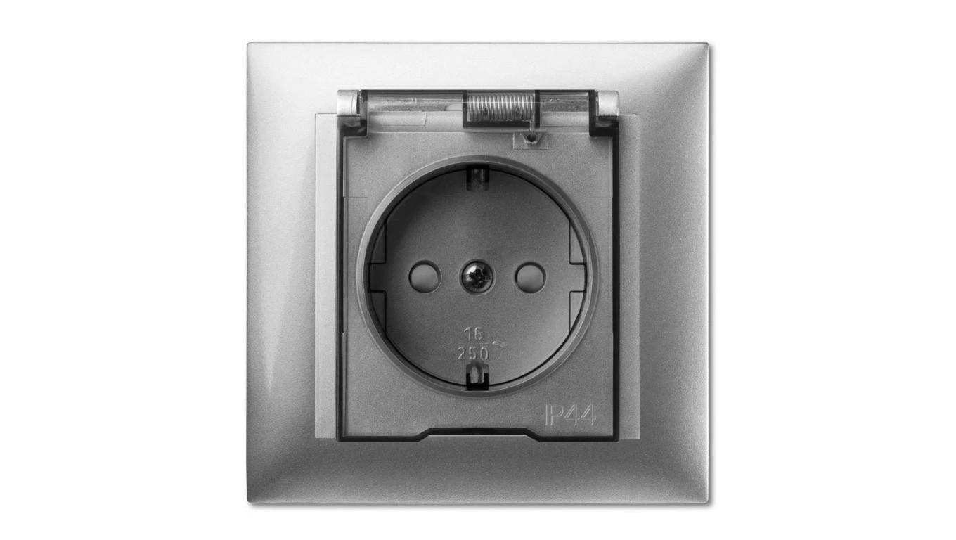 SENTIA MODUŁ SREBRNY POŁYSK GNIAZDO 1X Z/U Z PRZESŁONAMI ZACISKI ŚRUBOWE 16A 230V
