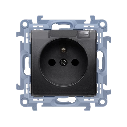 Simon 54 Gniazdo pojedyncze SCHUKO z/u 16A IP20 z przesłoną torów, szybkozłącza, antracyt DGSz1CZ.01/48