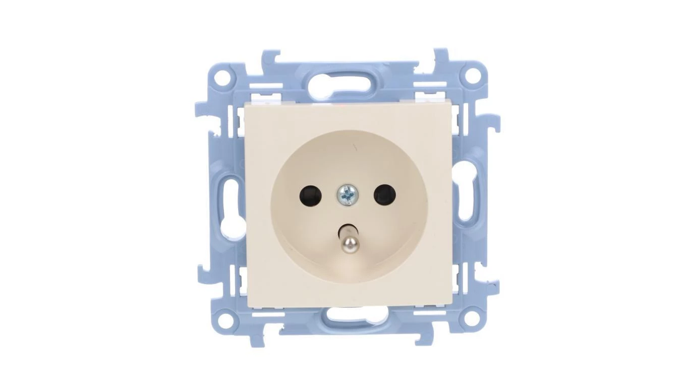 Gniazdo wtyczkowe z uziemieniem pojedyncze z przesłonami torów prądowych (moduł) 16A, 250V~, szybkozłącza, krem, SIMON10 o numerze katalogowym CGZ1CZ.01/41 w kategorii Gniazda podtynkowe, Gniazda instalacyjne. Produkt wyprodukowany przez markę KONTAKT-SIMON, seria SIMON 10.