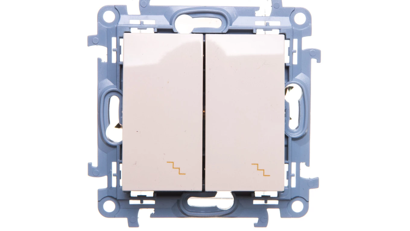 Łącznik schodowy podwójny (moduł) 10 AX, 250 V~, zaciski śrubowe, beż Simon10 o numerze katalogowym CW6/2.01/41 w kategorii Łączniki podtynkowe schodowe, Łączniki schodowe. Produkt wyprodukowany przez markę KONTAKT-SIMON, seria Simon 10.
