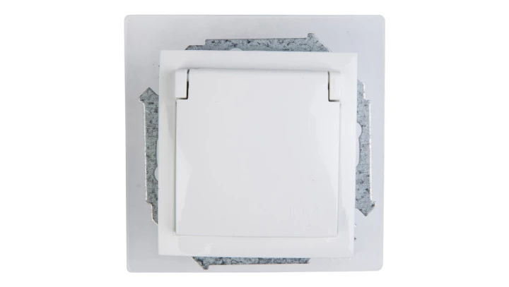 SIMON BASIC MODUŁ BIAŁY GNIAZDO 1X Z/U Z KLAPKĄ IP44 Z PRZESŁONAMI ZACISKI ŚRUBOWE 16A 250V