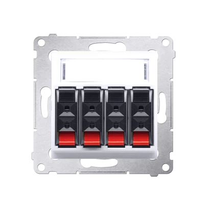 Gniazdo głośnikowe 4-krotne, do podłączenia 4 kolumn głośnikowych, biały Simon54 o numerze katalogowym DGL34.01/11 w kategorii Gniazda głośnikowe, Łączniki i gniazda instalacyjne. Produkt wyprodukowany przez markę KONTAKT-SIMON, seria SIMON 54.