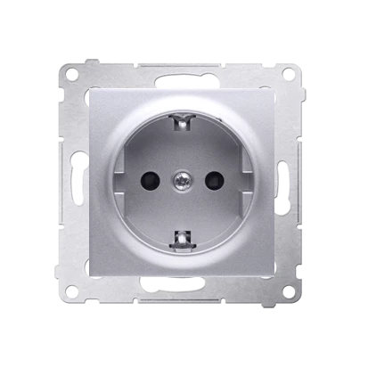 Gniazdo Schuko przesłona styków, srebrny mat Simon54 o numerze katalogowym DGSZ1Z.01/43 w kategorii Gniazda podtynkowe, Gniazda instalacyjne. Produkt wyprodukowany przez markę KONTAKT-SIMON, seria SIMON 54.