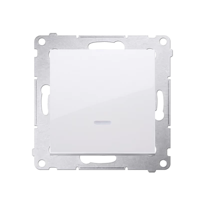 Przycisk pojedynczy zwierny z podświetleniem LED bez piktogramu 10 AX, biały Simon54 o numerze katalogowym DP1L.01/11 w kategorii Przyciski podtynkowe jednobiegunowe, Przyciski jednobiegunowe. Produkt wyprodukowany przez markę KONTAKT-SIMON, seria SIMON 54.
