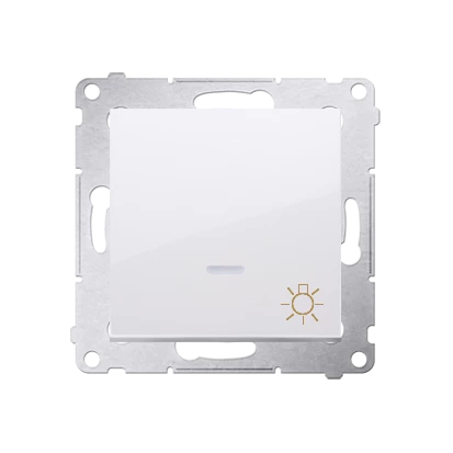 Przycisk "światło" z podświetleniem LED 10 AX, biały Simon54 o numerze katalogowym DS1L.01/11 w kategorii Przyciski podtynkowe "światło", Przyciski "światło". Produkt wyprodukowany przez markę KONTAKT-SIMON, seria SIMON 54.
