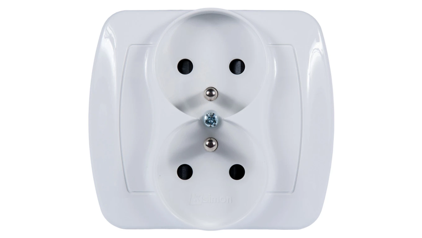 SIMON AKORD BIAŁY GNIAZDO 2X Z/U Z PRZESŁONAMI ZACISKI ŚRUBOWE 16A 250V