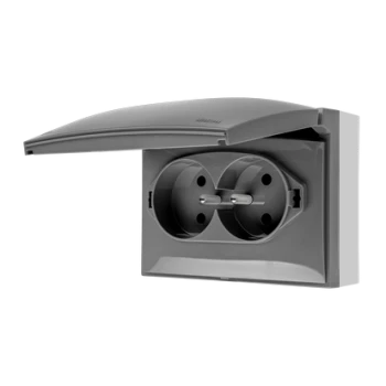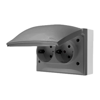 Simon Aquaclick Gniazdo IP44, podwójne kompaktowe z uziem., klapka transparentna z przesł. torów prąd. szary ACGZ2Z/16A