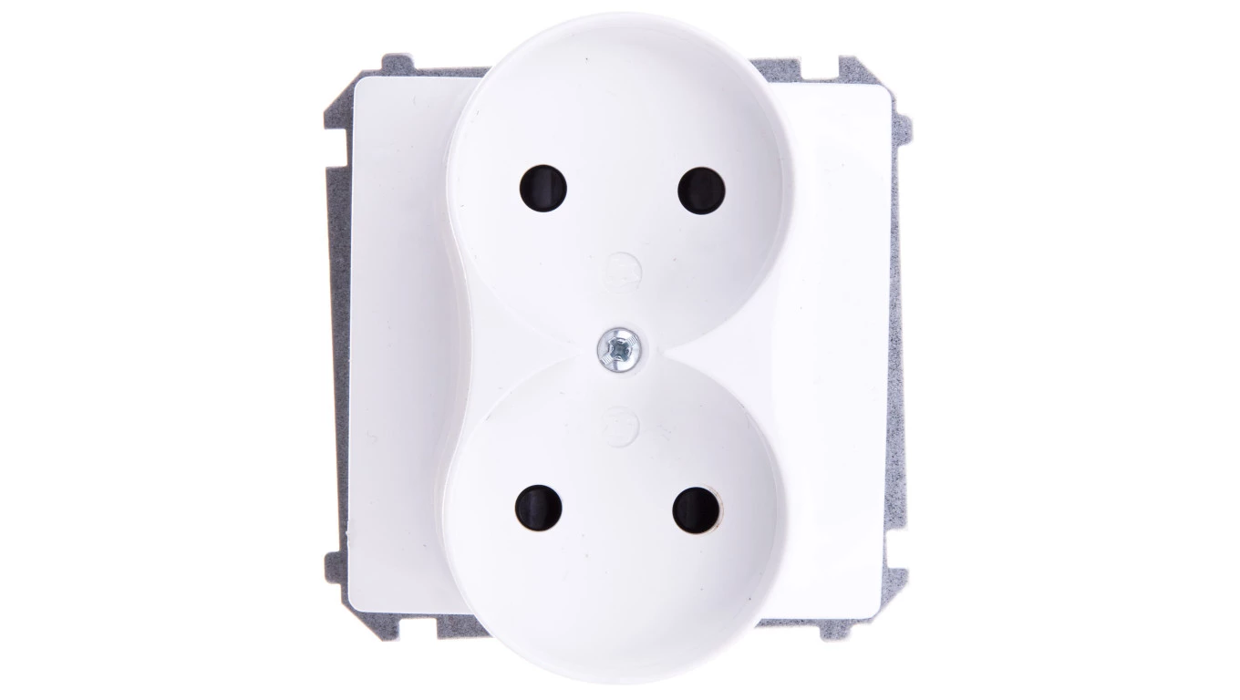 Gniazdo wtyczkowe podwójne bez uziemienia (moduł) z przesłonami torów prądowych, 16A, 250V~, zaciski śrubowe, biały, BASIC MODUŁ o numerze katalogowym BMG2MZ.01/11 w kategorii Gniazda podtynkowe, Gniazda instalacyjne. Produkt wyprodukowany przez markę KONTAKT-SIMON, seria BASIC MODUŁ.