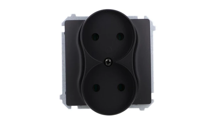 Simon Basic Gniazdo wtyczkowe podwójne bez uziemienia (moduł),16A, 250V, zaciski śrubowe czarny BMG2M.01/49