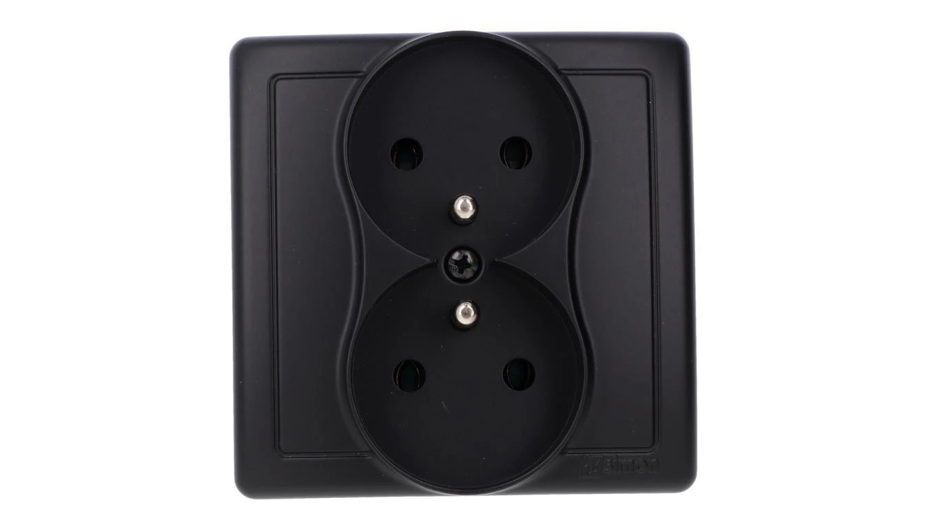 SONATA MODUŁ CZARNY METALIK GNIAZDO 2X Z/U Z PRZESŁONAMI ZACISKI ŚRUBOWE 16A 250V