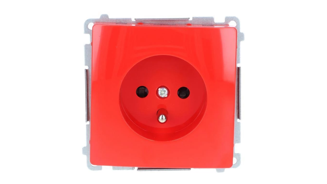 SIMON BASIC MODUŁ CZERWONY GNIAZDO 1X Z/U Z PRZESŁONAMI ZACISKI ŚRUBOWE 16A 250V
