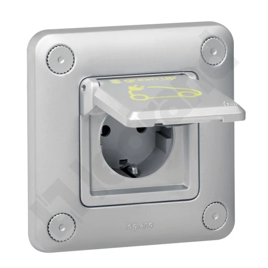 SOLIROC CHROM GNIAZDO 1X Z/U GREEN'UP Z KLAPKĄ IP55 K10 ZACISKI SPRĘŻYNOWE 16A 240V