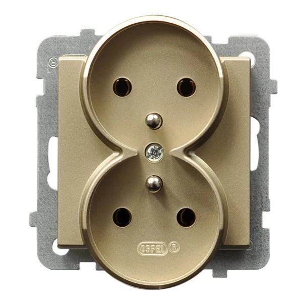 Gniazdo podwójne z uziemieniem, szampański złoty SONATA o numerze katalogowym GP-2RRZ/M/39 w kategorii Gniazda podtynkowe, Gniazda instalacyjne. Produkt wyprodukowany przez markę OSPEL, seria SONATA.