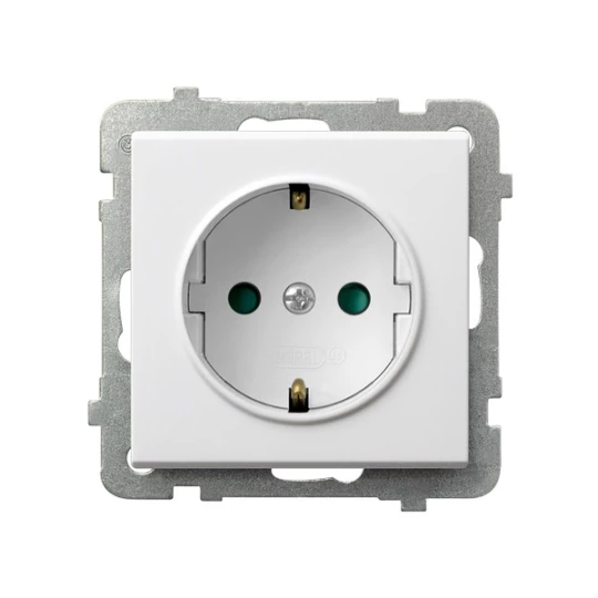SONATA Gniazdo pojedyncze z uziemieniem schuko z przesłonami torów prądowych biały mat GP-1RSP/m/75