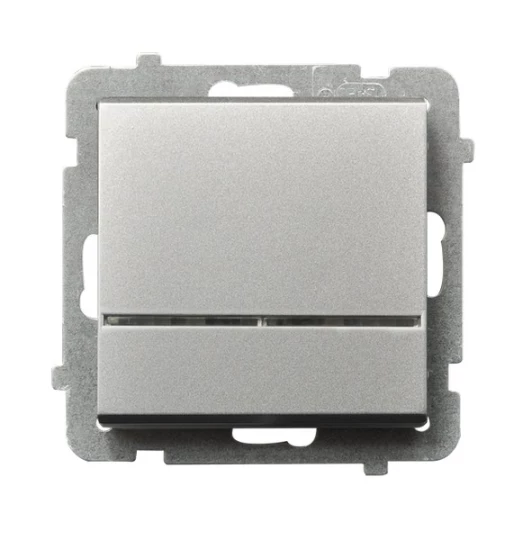 Łącznik kontrolny z podświetleniem niebieskim, srebro mat SONATA o numerze katalogowym ŁP-12RS/M/38 w kategorii Łączniki pozostałe, akcesoria podtynkowe, Łączniki i gniazda instalacyjne. Produkt wyprodukowany przez markę OSPEL, seria SONATA.