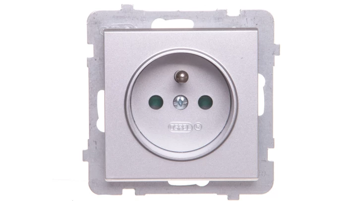 Gniazdo pojedyncze z uziemieniem z przesłonami torów prądowych, srebro mat SONATA o numerze katalogowym GP-1RZP/M/38 w kategorii Gniazda podtynkowe, Gniazda instalacyjne. Produkt wyprodukowany przez markę OSPEL, seria SONATA.