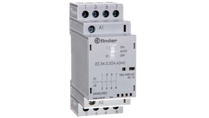 Stycznik modułowy 4Z 25A 24V AC/DC funkcja Auto-On-Off, wskaźnik zadziałania + LED, 35mm 22.34.0.024.4340