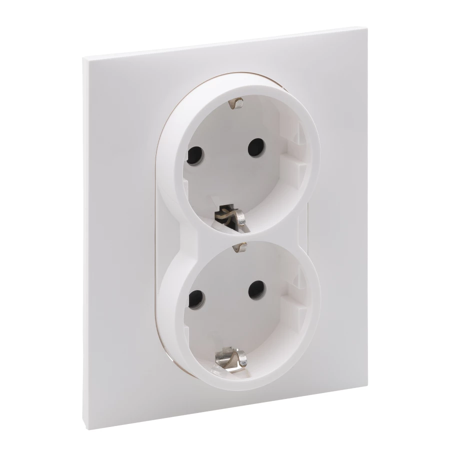Gniazdo SCHUKO 2x2P+Z z przesłoną - zaciski automatyczne (monoblok), BIAŁY SUNO o numerze katalogowym 721126 w kategorii Gniazda podtynkowe, Gniazda instalacyjne. Produkt wyprodukowany przez markę LEGRAND, seria SUNO2.