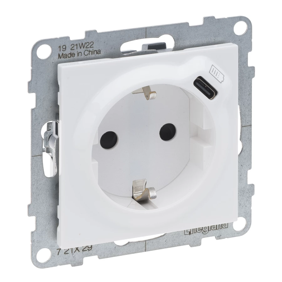 Gniazdo SCHUKO 2P+Z - 16 A - 250 V~ - + USB TYP C - 1,5 A - 5 V, BIAŁY SUNO o numerze katalogowym 721129 w kategorii Gniazda podtynkowe, Gniazda instalacyjne. Produkt wyprodukowany przez markę LEGRAND, seria SUNO2.