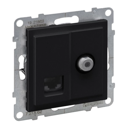 SUNO 2 MODUŁ CZARNY GNIAZDO MULTIMEDIALNE TV TYP F+ GNIAZDO 1X UAE 8 CAT.6 UTP