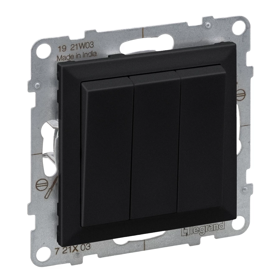 Łącznik potrójny - 20 AX - 250 V~ - zaciski śrubowe, CZARNY SUNO o numerze katalogowym 721403 w kategorii Łączniki pozostałe, akcesoria podtynkowe, Łączniki i gniazda instalacyjne. Produkt wyprodukowany przez markę LEGRAND, seria SUNO2.