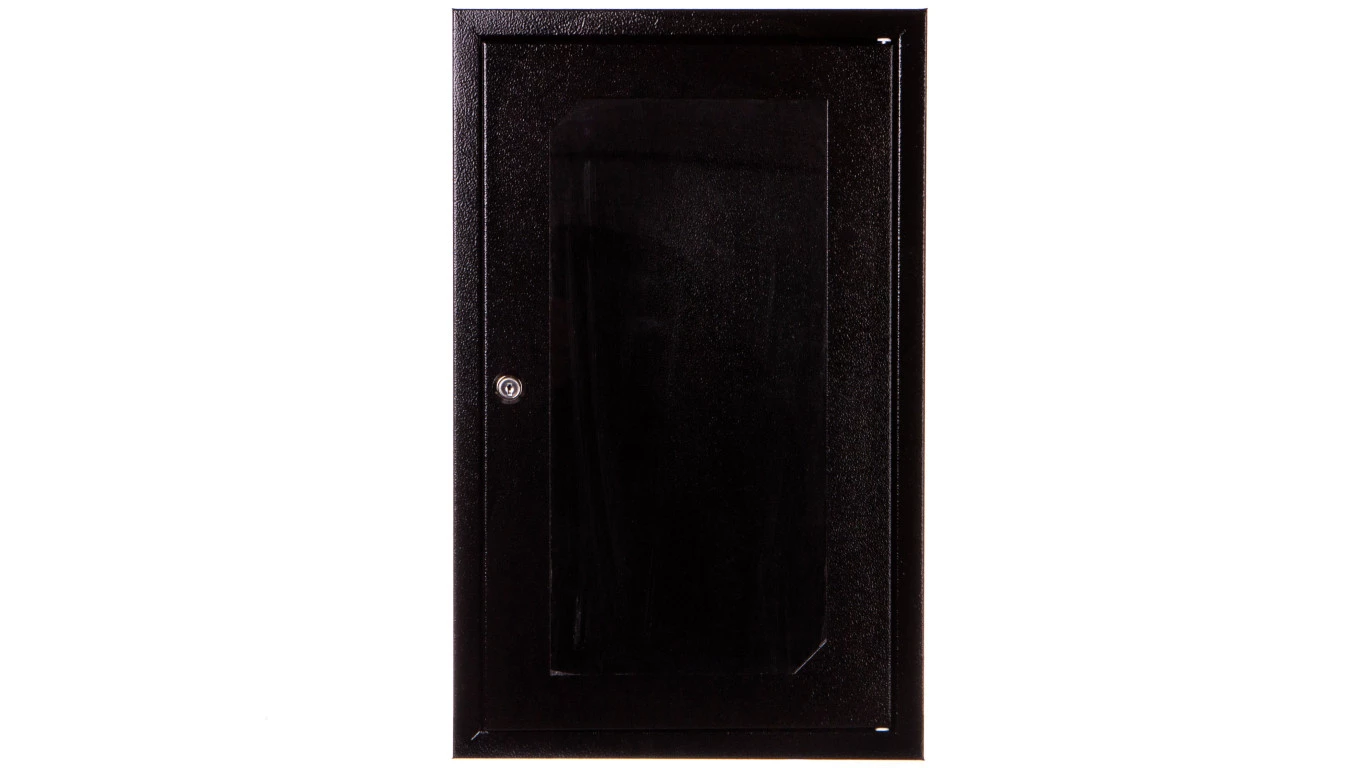 Szafa rack wisząca 10 9U 310x300 IP30 RAL9005 czarna (drzwi przeszklone) SZW-10-9U-30-DS-C