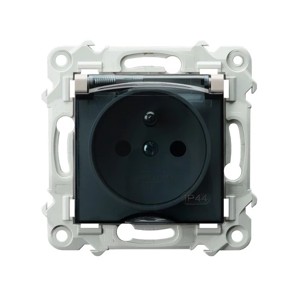 Simon 54 Gniazdo bryzgoszczelne z/u IP44 z klapką transparentną antracyt DGZ1BZ.01/48A
