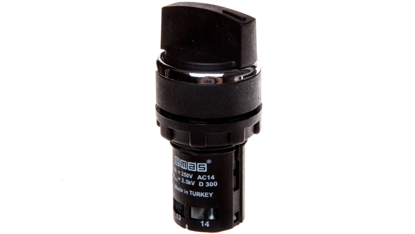 Przełącznik 3 połóżeniowy klucz 22mm czarny 2Z bez samopowrotu ST22-SAAA-20.
