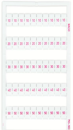 mata oznacznikowa WMB; jako karta; z nadrukiem; 10, 20 ... 50 (po 20x); nierozciągalne; nadruk poziomo; do montażu zatrzaskowego; biały
