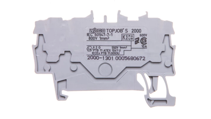 złączka przelotowa 3-przewodowa; 1 mm²; do zastosowań Ex e II; opis z boku i na środku; na szynę TS 35 x 15 i 35 x 7,5; Push-in CAGE CLAMP®; 1,00 mm²; szary