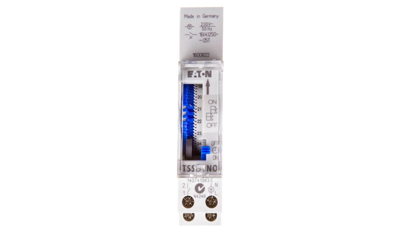 Analogowy zegar sterowniczy 24h, 1 zwierny TSSD1NO o numerze katalogowym 167389 w kategorii Zegary sterujące, Aparatura sterująca. Produkt wyprodukowany przez markę EATON, seria TSS.