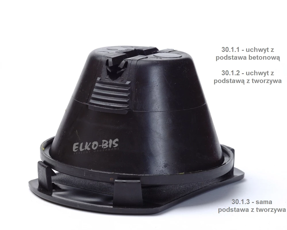 Uchwyt betonowy w tworzywie z podst.plastik. o numerze katalogowym 93002111 w kategorii Elementy zwodów poziomych, Instalacje odgromowe. Produkt wyprodukowany przez markę ELKO-BIS.