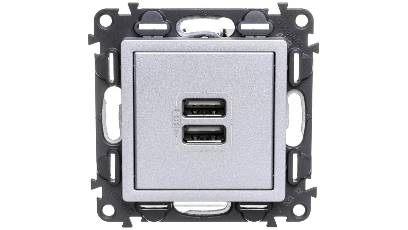 Ładowarka z gniazdem 2 x USB aluminium VALENA LIFE o numerze katalogowym 753312 w kategorii Gniazda podtynkowe, Gniazda instalacyjne. Produkt wyprodukowany przez markę LEGRAND, seria VALIF.