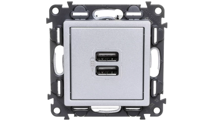 VALENA LIFE MODUŁ ALUMINIUM ŁADOWARKA Z GNIAZDEM 2X USB 5V 1500MA 230V