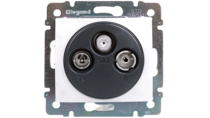 Gniazdo TV-RD-SAT (gwiazda) biały Valena o numerze katalogowym 774435 w kategorii Gniazda teleinformacyjne, multimedialne, Łączniki i gniazda instalacyjne. Produkt wyprodukowany przez markę LEGRAND, seria VALEN.
