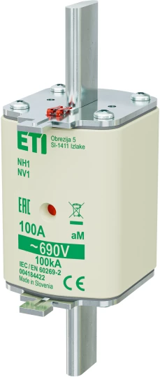Wkładka topikowa przemysłowa - silnikowa KOMBI NH1 AM 100A/690V o numerze katalogowym 004184422 w kategorii Wkładki bezpiecznikowe NH1, Wkładki bezpiecznikowe NH. Produkt wyprodukowany przez markę ETI.