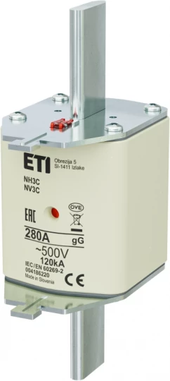 Wkładka topikowa przemysłowa zwłoczna KOMBI NH3C GG 280A/500V o numerze katalogowym 004186220 w kategorii Wkładki bezpiecznikowe NH3, Wkładki bezpiecznikowe NH. Produkt wyprodukowany przez markę ETI.